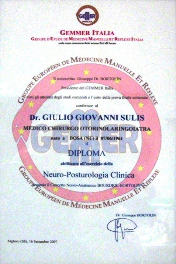 Nel 2001 frequenta il Corso di primo e di secondo livello con Orof Jastreboff sulla Terapia degli acufeni TRTe consegue il Diploma CIES (Collegio Internazionale di Studi di Statica).