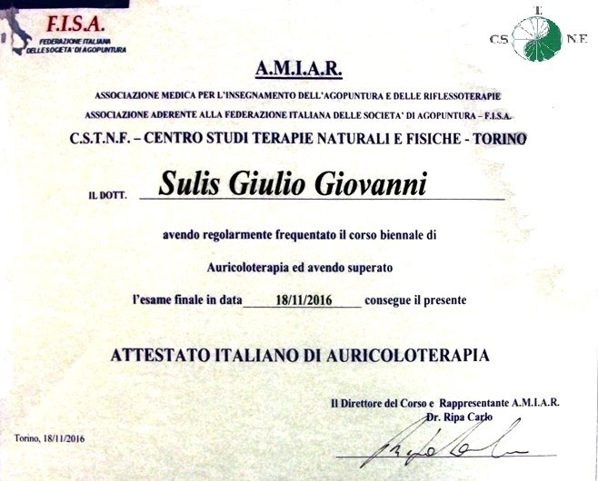 Nel 2016 consegue il Diploma in Auricoloterapia (FISA).